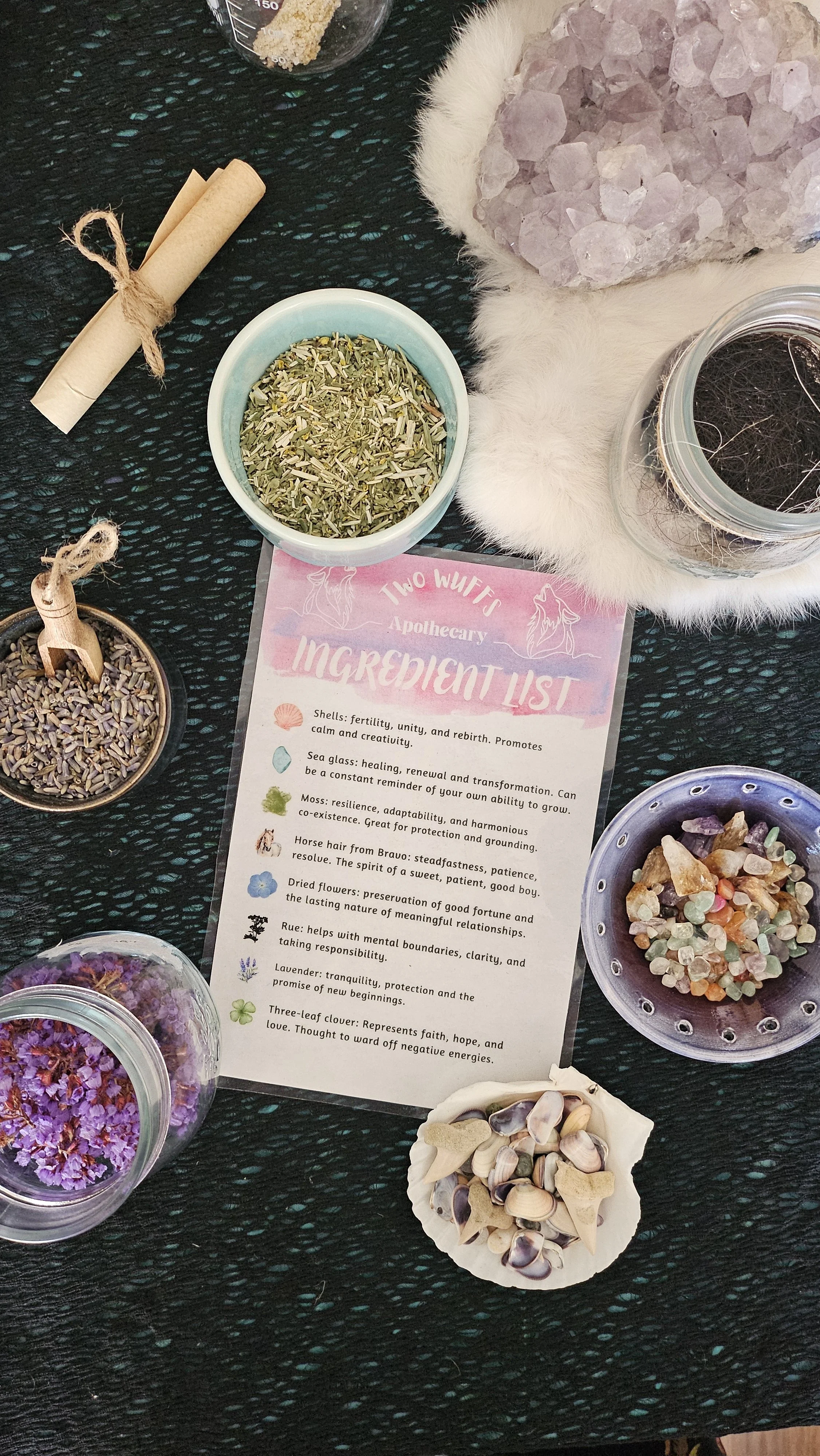 We offer two distinct services. One is a customizable DIY potion-crafting kit, which we will curate, pack, and mail to you.